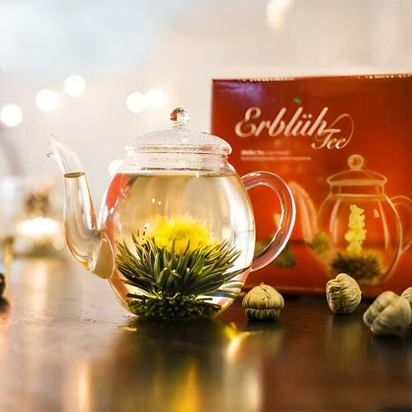 Kvitnúce čaje sa po zaliatí rozvinú do nádherného kvetu – v každej kanvici ožije malé umelecké dielo.